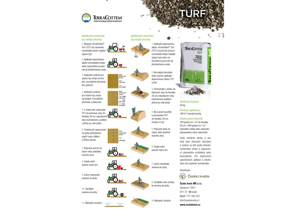 Nový trávník je nejzranitelnější právě na začátku: semínko klíčí, kořínky jsou mělké a stačí pár teplých dní a růst se zpomalí. TerraCottem Turf je půdní kondicionér určený pro trávníky, který pomáhá vytvořit lepší podmínky v půdě. Skvělé pro založení trávníku ze semen, dosévání holých míst i při pokládce travního koberce.
