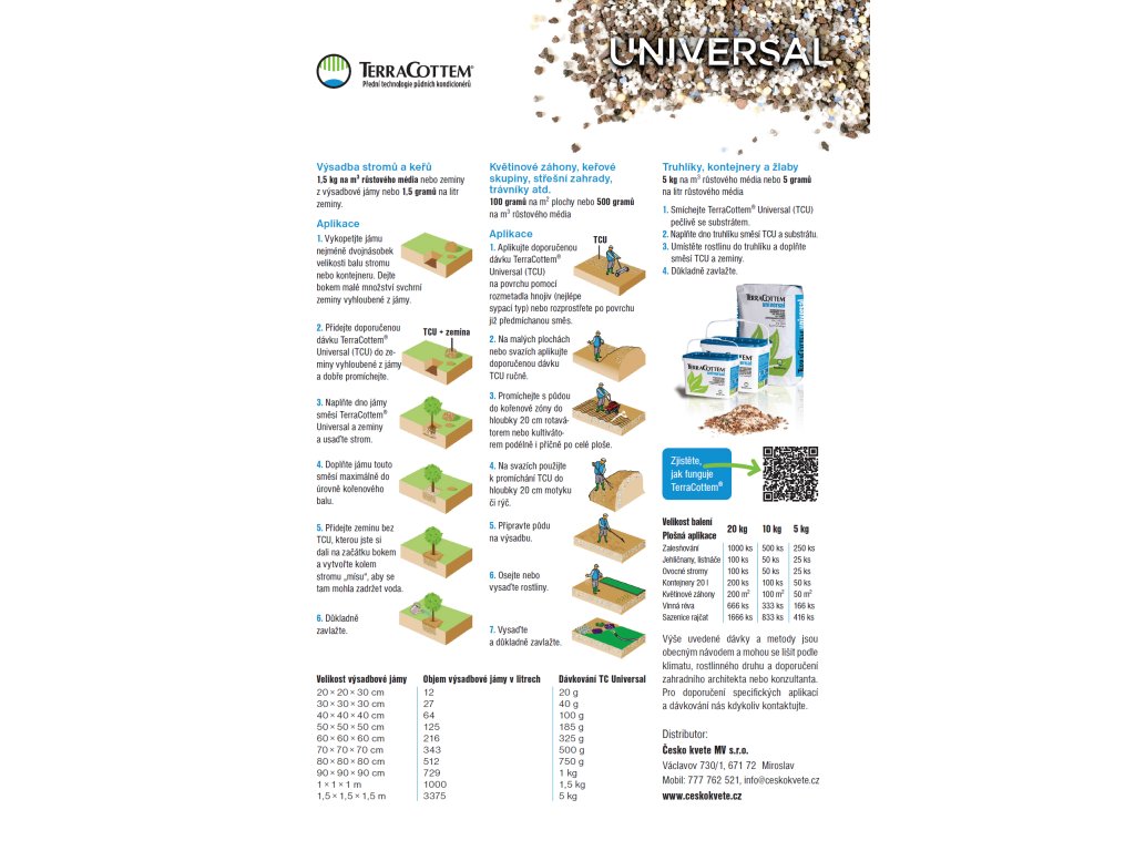 Půdní kondicioner musí být rovnoměrně promíchán se zeminou nebo substrátem před osetím nebo výsadbou.